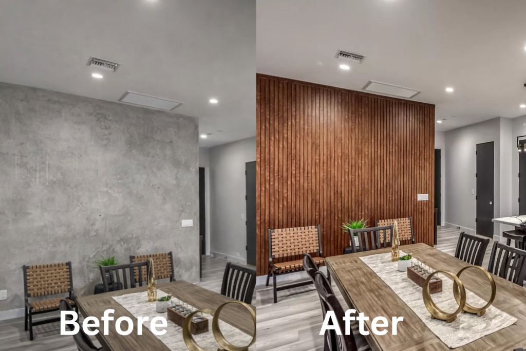 Before & After installation of GTO’s Wood-Look Aluminum Panels